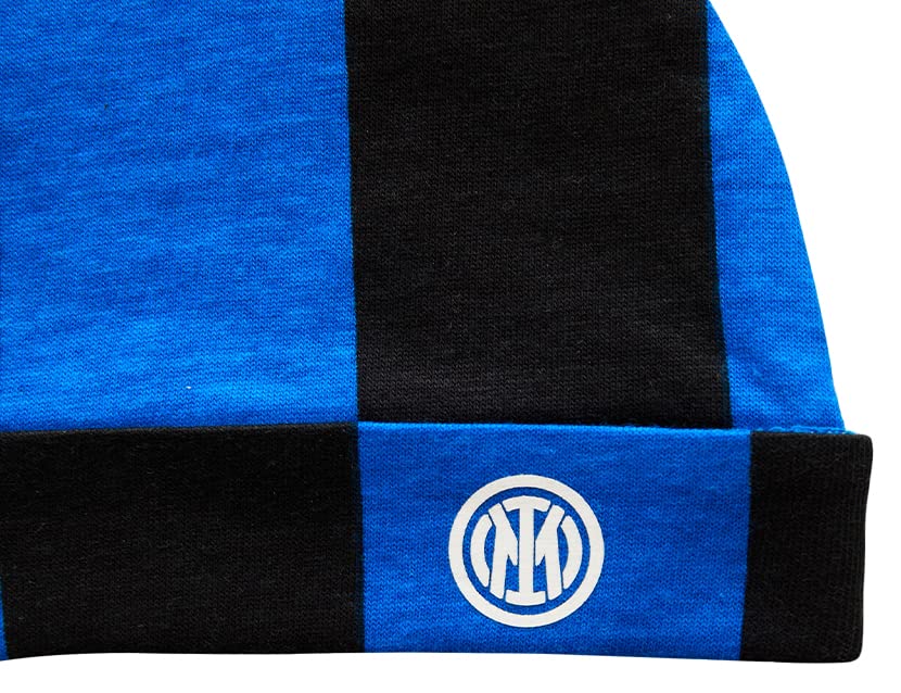 De Inter muts met de zwart-blauwe strepen van zacht katoen is een onmisbaar accessoire voor de kleine interisten-fan. Officieel product