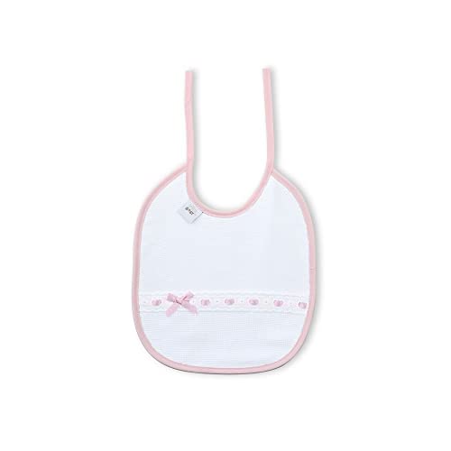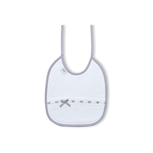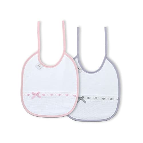 Set van 2 katoenen slabbetjes voor baby’s en pasgeborenen. Prachtige slabbetjes met doorvoerstroken en geborduurde strepen, gemaakt van katoen met waterafstotende behandeling. Het gaat om rechthoekige slabbetjes die 20 x 25 cm groot zijn en met twee lussen worden geknoopt. De stof aan de voorzijde is gemaakt van piqué en de rug is gemaakt van katoenen jersey