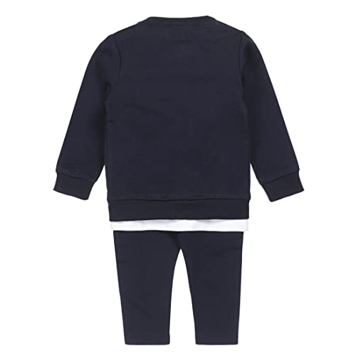 Deze dirk jongenspakje 3-delig in donkerblauw is gemaakt van zacht katoen. Het shirt met korte mouwen is wit met een print. De donkerblauwe cardigan closes met een rits en heeft een gestreepte lijn in een V-vorm op de borst en aan de zijkant van de broek.