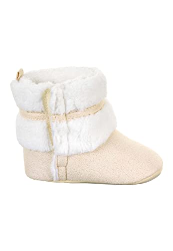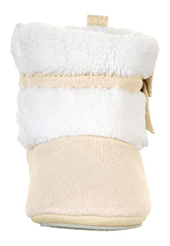 Babylaarzen van geweven velours met teddy-fleece manchetten en decoratieve strik, met klittenbandsluiting en opgenaaide antislipzool, gevoerd met teddyfleece