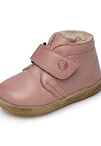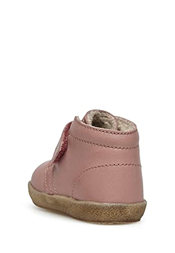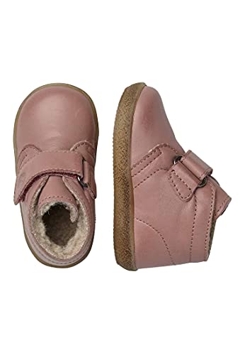 Sneakers met klittenbandsluiting van kalfsleer, kleur oudroze, ideaal voor het begeleiden van kinderen bij hun eerste stappen, dankzij de zachte zool en het bovenmateriaal van leer en de flexibiliteit van de rubberen zool. De wollen voering houdt de voet lekker warm en maakt deze schoen perfect voor elk type outfit en toepassingsmogelijkheden in de wintertijd.